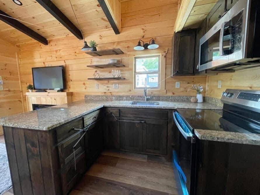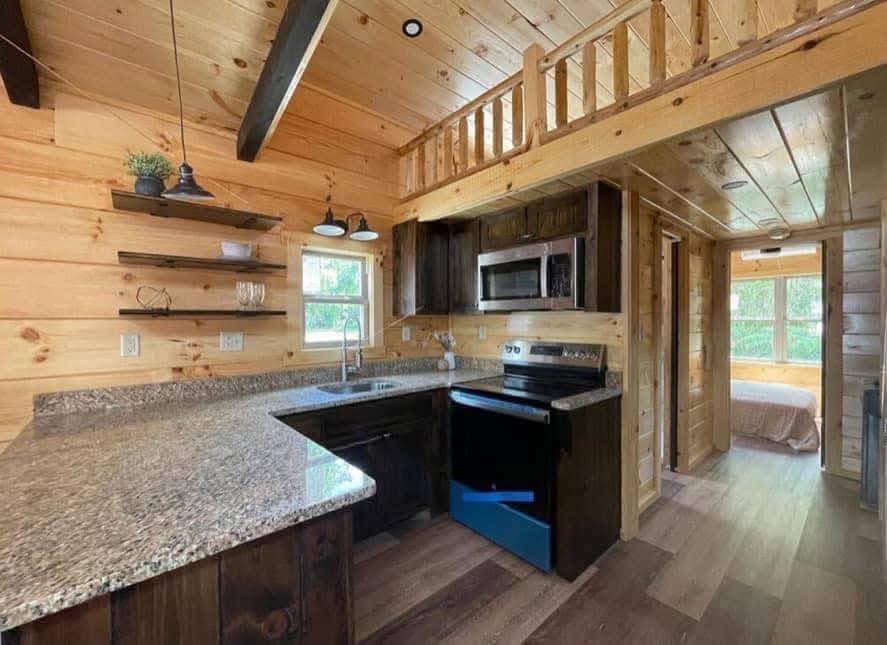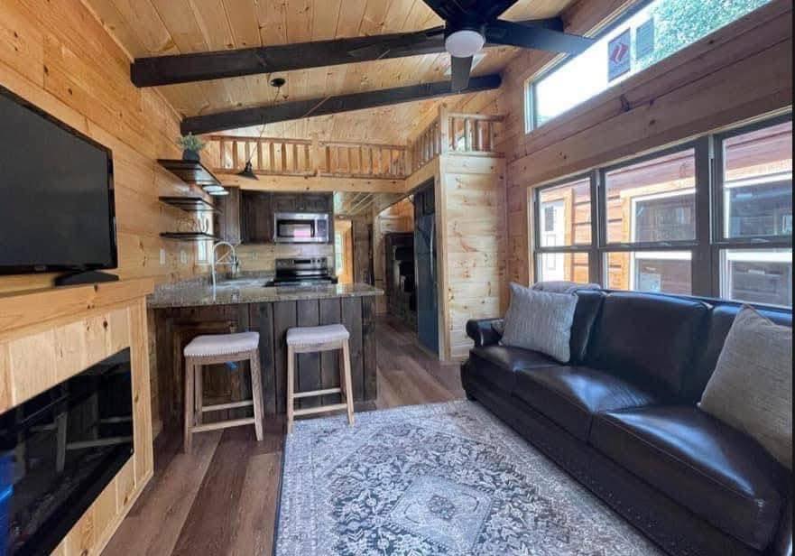 RV park model with a loft that comfortably sleeps 6 people.