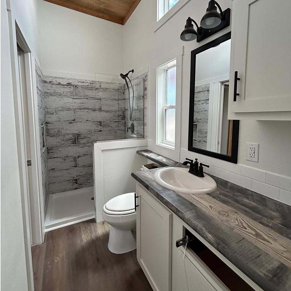 A level floor 1 bedroom and bathroom tiny house